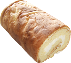 季節により 生チョコロール、抹茶ロール、フルーツロールなど販売) シュークリームの皮で包んだ生クリームのロールケーキです。